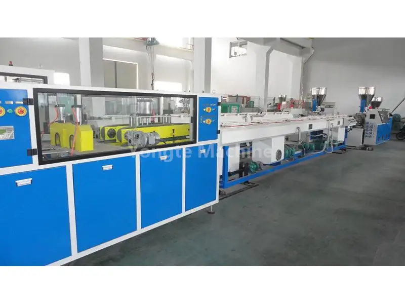 Издржљива машина за прављење ПВЦ цеви са дуплим шупљинама Ионгте фабрике је производни апарат високих перформанси пројектован да истовремено производи две ПВЦ цеви са врхунском продуктивношћу. Укључује конусни екструдер са два пужа са побољшаном конфигурацијом пужа, што гарантује доследну пластификацију ПВЦ смоле (СГ-5, УПВЦ, ЦПВЦ) и разних адитива. Стопа производње за ПВЦ цеви са двоструком шупљином од 16-50 мм може да достигне 12-15 метара у минути. Машина показује кључне предности као што су напредна аутоматизација, повећана ефикасност, изузетан квалитет, ергономска механичка архитектура, очување енергије и рад прилагођен кориснику.